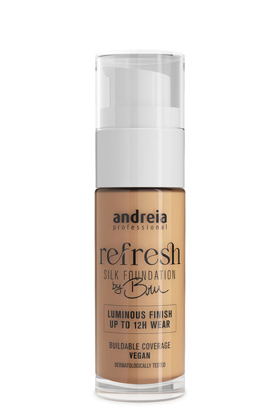 Además de realzar su belleza natural, REFRESH SILK FOUNDATION BY BRU es también una elección consciente: 100% vegana y dermatológicamente testada. Adecuada para todo tipo de pieles, incluidas las sensibles.